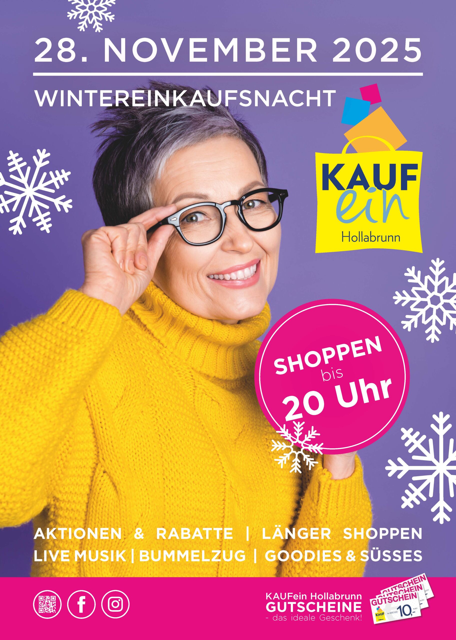 Wintereinkaufsnacht – 28. November 2025 Shoppen bis 20 Uhr im KAUFein Hollabrunn! AKTIONEN & RABATTE | LÄNGER SHOPPEN | LIVE MUSIK | SÜSSES & GOODIES | BUMMELZUG 28. November 2025 Lena Breitschopf2025-10-30T11:35:30+00:00